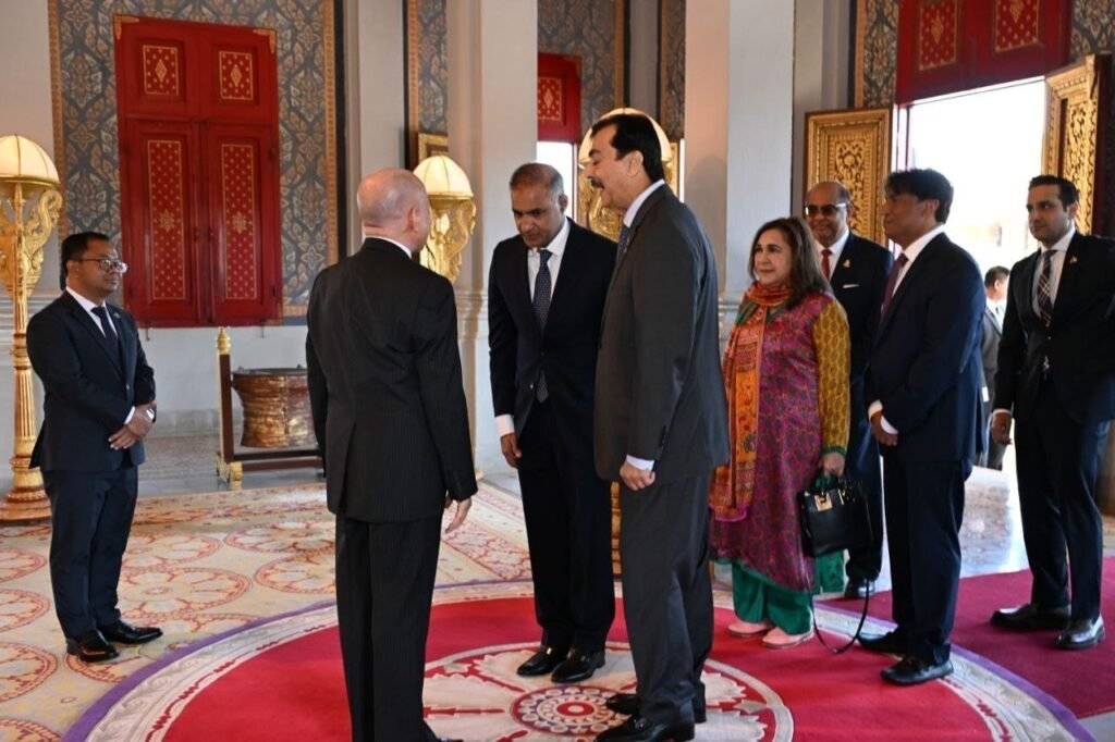 (ភ្នំពេញ)៖ នៅព្រឹកថ្ងៃទី៣ ខែកុម្ភៈ ឆ្នាំ២០២៦នេះ លោក ស៊ីយ៉េដ យូសាហ្វ រ៉ាសា ហ្គីឡានី (Syed Yusuf Raza Gillani) ប្រធានព្រឹទ្ធសភា នៃសាធារណរដ្ឋអ៊ីស្លាមប៉ាគីស្ថាន បានចូលក្រាបបង្គំគាល់ ព្រះករុណា ព្រះបាទ សម្តេចព្រះបរមនាថ នរោត្តម សីហមុនី ព្រះមហាក្សត្រនៃព្រះរាជាណាចក្រកម្ពុជា ជាទីគោរពសក្ការៈដ៏ខ្ពង់ខ្ពស់បំផុត នៅព្រះបរមរាជវាំង ក្នុងឱកាសដឹកនាំគណៈប្រតិភូព្រឹទ្ធសភាប៉ាគីស្ថាន អញ្ជើញមកបំពេញទស្សនកិច្ចផ្លូវការ នៅព្រះរាជាណាចក្រកម្ពុជា ពីថ្ងៃទី២-៥ ខែកុម្ភៈ ឆ្នាំ២០២៦៕