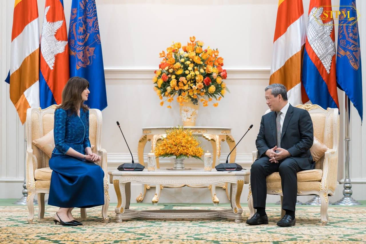 រាជធានីភ្នំពេញ ព្រឹកថ្ងៃចន្ទ ទី២ មីនា ២០២៦ Receiving a courtesy call and having a discussion with Her Excellency Vladanka Andreeva, United Nations Resident Coordinator in Cambodia, at Peace Palace. Phnom Penh, Monday morning, 2 March 2026